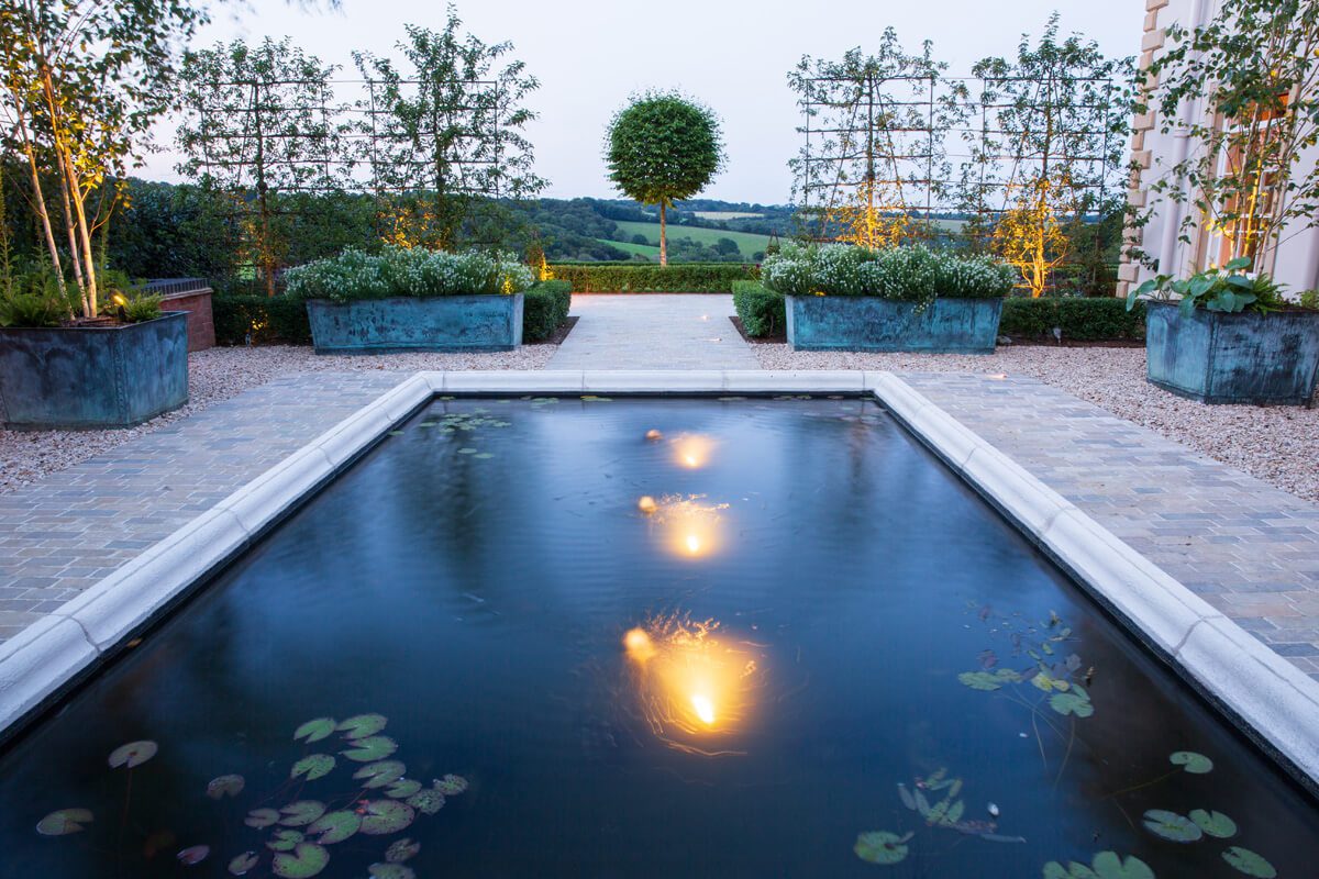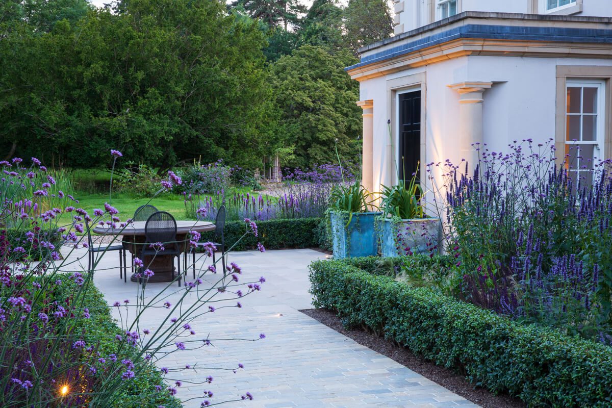 Lit at night to stunning effect, these pictures were taken only six months after the borders were planted. The soil is a heavy clay with rabbits and deer given free rein, but careful preparation and years of expertise ensured that the final result exceeded everyones expectation’s.